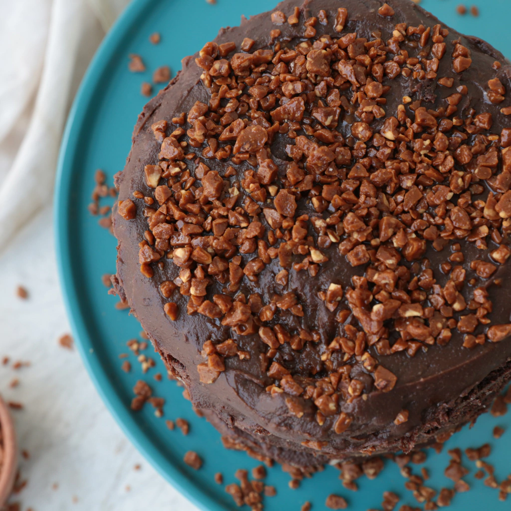 com crocante nas camadas e por cima.
